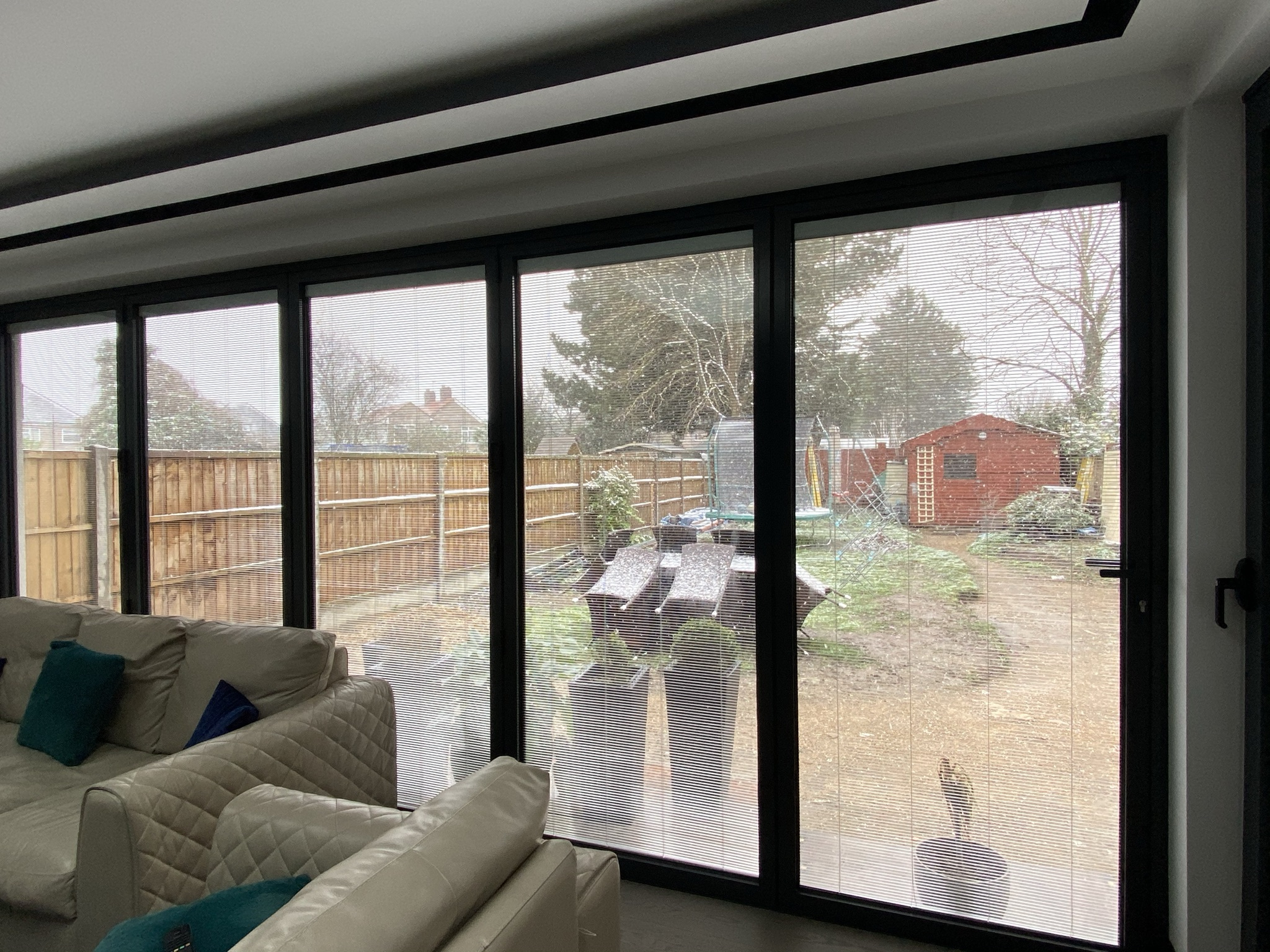 Introducing the future of convenience and style: our Bi-folding doors with electric blinds. These innovative doors not only open up your space to the outdoors but also feature built-in electric blinds for effortless light control. With a touch of a button, you can transform your surroundings, enhancing privacy and ambiance. Experience the perfect fusion of form and function, bringing modern elegance and smart living to your home or commercial space with our Bi-folding doors and electric blinds.